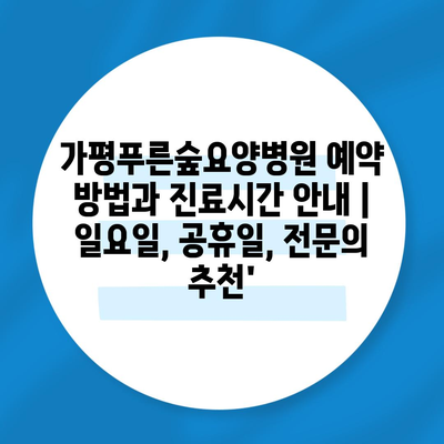 가평푸른숲요양병원 예약 방법과 진료시간 공지 | 일요일, 공휴일, 전연락 추천’에 대해 자주 묻는 질문 TOP 5