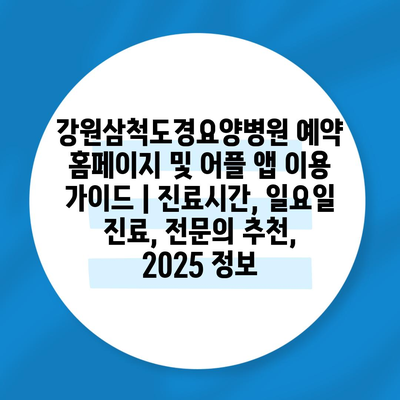 강원삼척도경요양병원 예약 홈페이지 및 어플 앱 이용 설명서 | 진료시간, 일요일 진료, 전연락 추천, 2025 정보에 대한 글입니다.