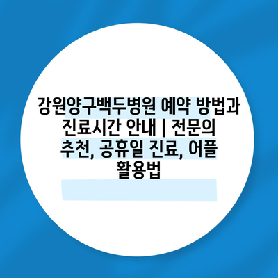 ✅ 강원양구백두병원 예약 방법을 쉽게 알아보세요!