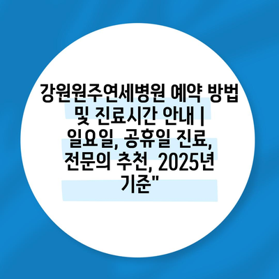 강원원주연세병원 예약 방법 및 진료시간 안내 | 일요일, 공휴일 진료, 전문의 추천, 2025년 기준”