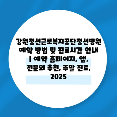 강원정선근로복지공단정선병원 예약 방법 및 진료시간 공지 | 예약 홈페이지, 앱, 전연락 추천, 주말 진료, 2025 에 대해 자주 묻는 질문 TOP 5