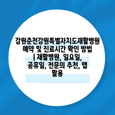 강원춘천강원특별자치도재활병원 예약 및 진료시간 확인 방법 | 재활병원, 일요일, 공휴일, 전연락 추천, 앱 활용 에 대해 자주 묻는 질문 TOP 5