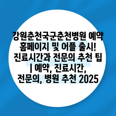 강원춘천국군춘천병원 예약 홈페이지 및 어플 출시! 진료시간과 전문의 추천 팁 | 예약, 진료시간, 전문의, 병원 추천 2025