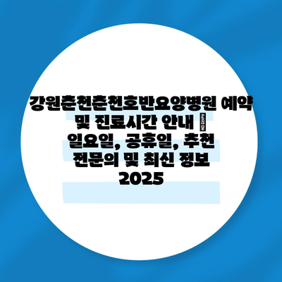 강원춘천춘천호반요양병원 예약 및 진료시간 공지 | 일요일, 공휴일, 추천 전연락 및 최신 정보 2025 에 대해 자주 묻는 질문 TOP 5