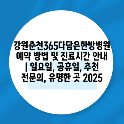 강원춘천365다담은한방병원 예약 방법 및 진료시간 공지 | 일요일, 공휴일, 추천 전연락, 유명한 곳 2025 에 대해 자주 묻는 질문 TOP 5