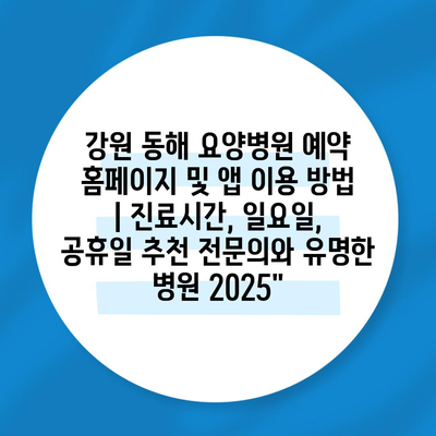 강원 동해 요양병원 예약 홈페이지 및 앱 이용 방법 | 진료시간, 일요일, 공휴일 추천 전연락와 유명한 병원 2025″에 대해 자주 묻는 질문 TOP 5