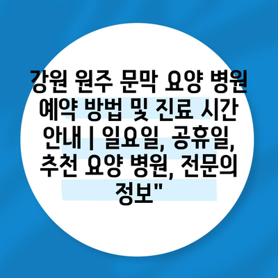 ✅ 문막 요양병원의 예약 방법과 진료 시간을 자세히 알아보세요.