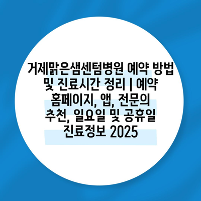 거제맑은샘센텀병원 예약 방법 및 진료시간 정리 | 예약 홈페이지, 앱, 전연락 추천, 일요일 및 공휴일 진료정보 2025