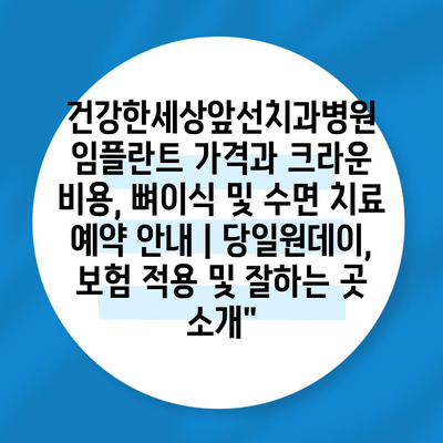 건강한세상앞선치과병원 임플란트 가격과 크라운 비용, 뼈이식 및 수면 치료 예약 공지 | 당일원데이, 보험 적용 및 잘하는 곳 소개” 에 대해 자주 묻는 질문 TOP 5
