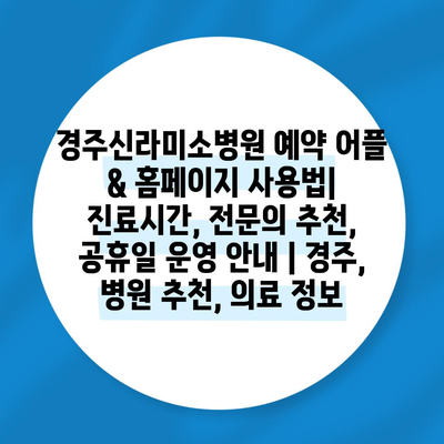 경주신라미소병원 예약 어플 & 홈페이지 사용법| 진료시간, 전문의 추천, 공휴일 운영 안내 | 경주, 병원 추천, 의료 정보