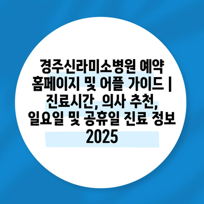 경주신라미소병원 예약 홈페이지 및 어플 가이드 | 진료시간, 의사 추천, 일요일 및 공휴일 진료 정보 2025