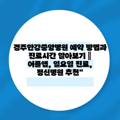 경주안강중앙병원 예약 방법과 진료시간 알아보기 | 어플앱, 일요일 진료, 정신병원 추천에 대해 자주 묻는 질문 TOP 5