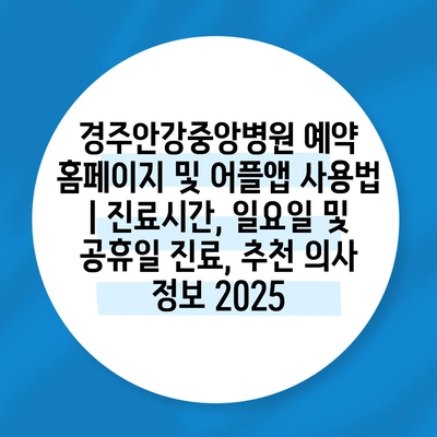 경주안강중앙병원 예약 홈페이지 및 어플앱 사용법 | 진료시간, 일요일 및 공휴일 진료, 추천 의사 정보 2025에 대해 알아보겠습니다.