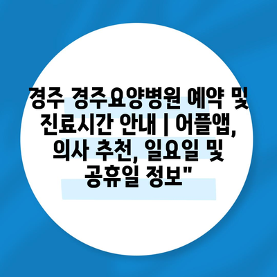 ✅ 경주요양병원 예약과 진료시간에 대한 모든 정보를 확인해 보세요.