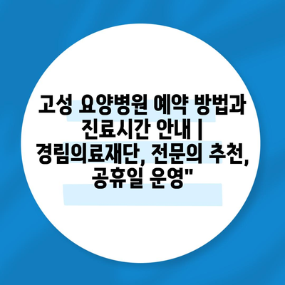 ✅ 고성 요양병원 예약 방법과 진료시간을 자세히 알아보세요.