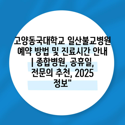 고양동국대학교 일산불교병원 예약 방법 및 진료시간 공지 | 종합병원, 공휴일, 전연락 추천, 2025 정보에 대해 알아보겠습니다.