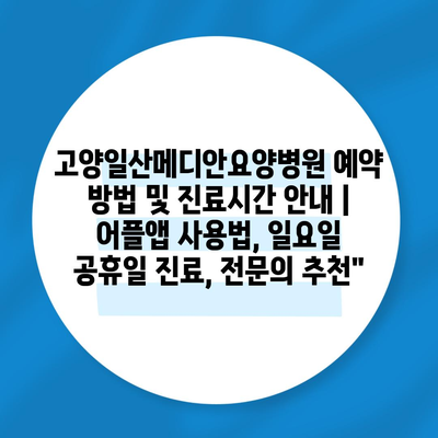 고양일산메디안요양병원 예약 방법 및 진료시간 안내 | 어플앱 사용법, 일요일 공휴일 진료, 전문의 추천”