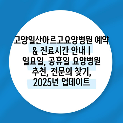 고양일산아르고요양병원 예약 & 진료시간 공지 | 일요일, 공휴일 요양병원 추천, 전연락 찾기, 2025년 업데이트 에 대해 자주 묻는 질문 TOP 5
