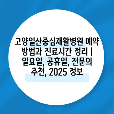 고양일산중심재활병원 예약 방법과 진료시간 정리 | 일요일, 공휴일, 전문의 추천, 2025 정보