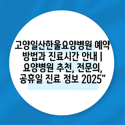 고양일산한울요양병원 예약 방법과 진료시간 공지 | 요양병원 추천, 전연락, 공휴일 진료 정보 2025″ 에 대해 자주 묻는 질문 TOP 5
