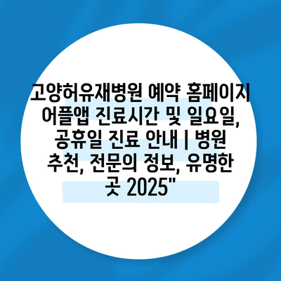 ✅ 고양허유재병원 진료시간과 예약 방법을 알아보세요!
