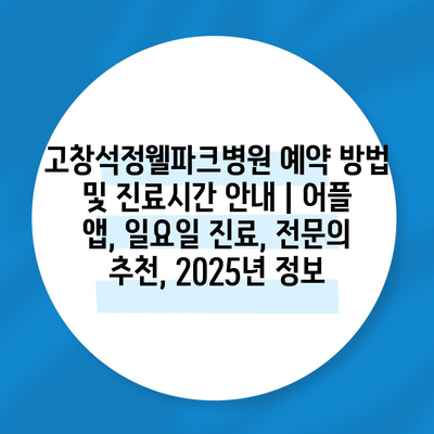 고창석정웰파크병원 예약 방법 및 진료시간 공지 | 어플 앱, 일요일 진료, 전연락 추천, 2025년 정보 에 대해 자주 묻는 질문 TOP 5