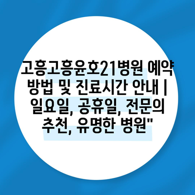 ✅ 고흥윤호21병원의 진료시간과 예약 방법을 자세히 알아보세요.