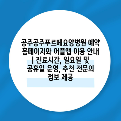 공주공주푸르메요양병원 예약 홈페이지와 어플앱 이용 안내 | 진료시간, 일요일 및 공휴일 운영, 추천 전문의 정보 제공