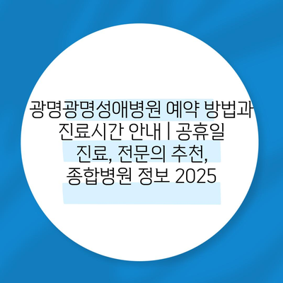 광명광명성애병원 예약 방법과 진료시간 공지 | 공휴일 진료, 전연락 추천, 종합병원 정보 2025 에 대해 자주 묻는 질문 TOP 5