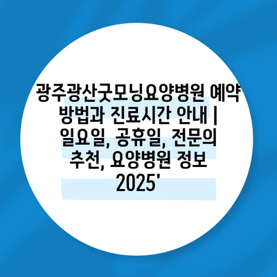 광주광산굿모닝요양병원 예약 방법과 진료시간 공지 | 일요일, 공휴일, 전연락 추천, 요양병원 정보 2025’에 대해 자주 묻는 질문 TOP 5