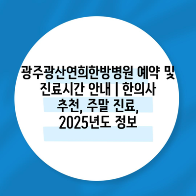 광주광산연희한방병원 예약 및 진료시간 공지 | 한의사 추천, 주말 진료, 2025년도 정보 에 대해 자주 묻는 질문 TOP 5