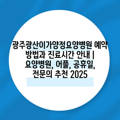 광주광산이가양정요양병원 예약 방법과 진료시간 공지 | 요양병원, 어플, 공휴일, 전연락 추천 2025 에 대해 자주 묻는 질문 TOP 5