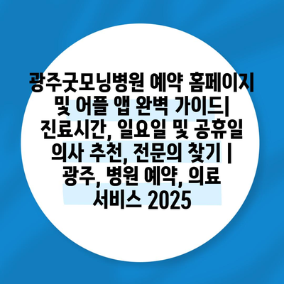 광주굿모닝병원 예약 홈페이지 및 어플 앱 완벽 설명서| 진료시간, 일요일 및 공휴일 의사 추천, 전연락 찾기 | 광주, 병원 예약, 의료 서비스 2025