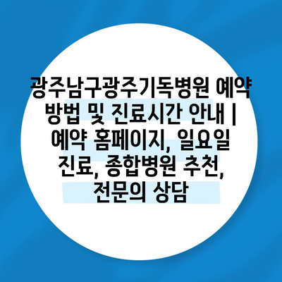 광주남구광주기독병원 예약 방법 및 진료시간 공지 | 예약 홈페이지, 일요일 진료, 종합병원 추천, 전연락 상담 에 대해 자주 묻는 질문 TOP 5