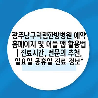 광주남구덕림한방병원 예약 홈페이지 및 어플 앱 활용법 | 진료시간, 전연락 추천, 일요일 공휴일 진료 정보에 대해 자주 묻는 질문 TOP 5