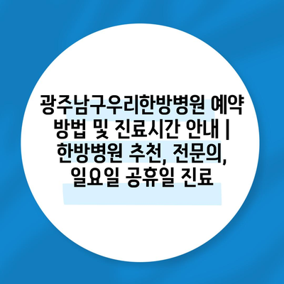 광주남구우리한방병원 예약 방법 및 진료시간 공지 | 한방병원 추천, 전연락, 일요일 공휴일 진료 에 대해 자주 묻는 질문 TOP 5