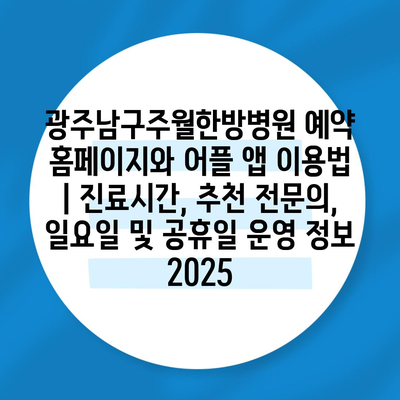 광주남구주월한방병원 예약 홈페이지와 어플 앱 이용법 | 진료시간, 추천 전문의, 일요일 및 공휴일 운영 정보 2025