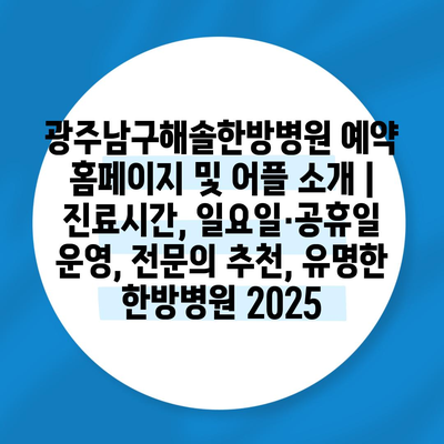 ✅ 광주남구해솔한방병원의 예약 방법과 진료시간을 지금 바로 알아보세요.