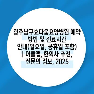광주남구효다움요양병원 예약 방법 및 진료시간 공지(일요일, 공휴일 포함) | 어플앱, 한의사 추천, 전연락 정보, 2025 에 대해 자주 묻는 질문 TOP 5