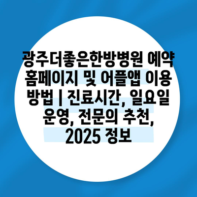 광주더좋은한방병원 예약 홈페이지 및 어플앱 이용 방법 | 진료시간, 일요일 운영, 전연락 추천, 2025 정보 에 대해 자주 묻는 질문 TOP 5