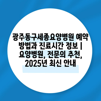 광주동구세종요양병원 예약 방법과 진료시간 정보 | 요양병원, 전연락 추천, 2025년 최신 공지 에 대해 자주 묻는 질문 TOP 5
