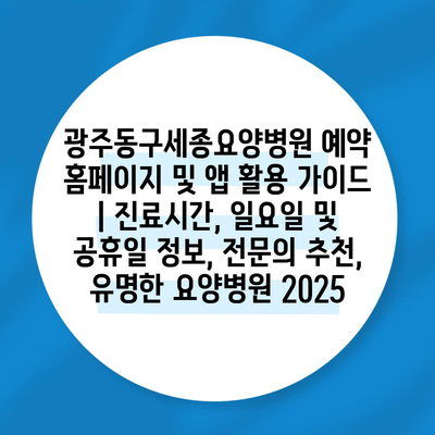광주동구세종요양병원 예약 홈페이지 및 앱 활용 가이드 | 진료시간, 일요일 및 공휴일 정보, 전문의 추천, 유명한 요양병원 2025