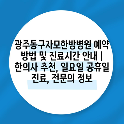 ✅ 광주동구자모한방병원의 진료시간과 예약 방법을 자세히 알아보세요.
