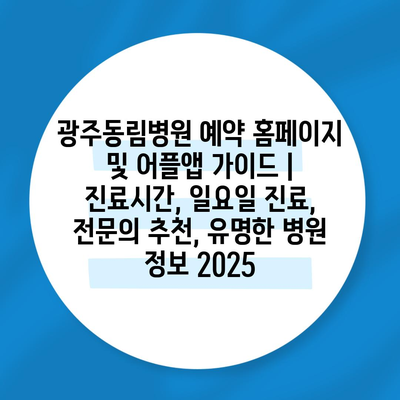 ✅ 광주동림병원 예약 방법과 진료 정보를 자세히 알아보세요.