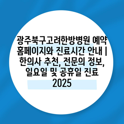 ✅ 광주북구고려한방병원의 예약 방법과 진료 시간을 알아보세요.