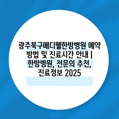 광주북구메디웰한방병원 예약 방법 및 진료시간 공지 | 한방병원, 전연락 추천, 진료정보 2025 에 대해 자주 묻는 질문 TOP 5
