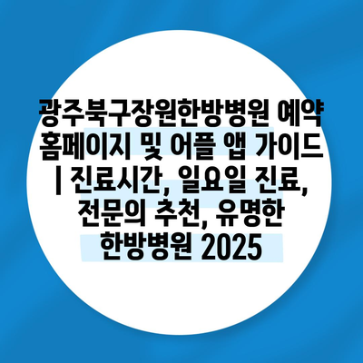 ✅ 광주북구장원한방병원의 예약 방법과 팁을 알아보세요.