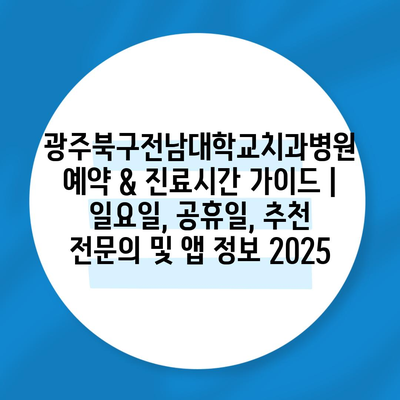 광주북구전남대학교치과병원 예약 & 진료시간 가이드 | 일요일, 공휴일, 추천 전문의 및 앱 정보 2025