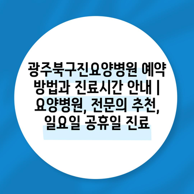 ✅ 광주북구진요양병원의 예약 방법과 진료시간을 지금 바로 알아보세요.