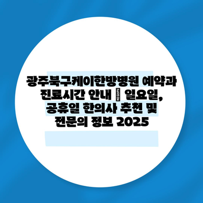 ✅ 광주북구케이한방병원 예약 방법과 진료 시간에 대해 알아보세요.